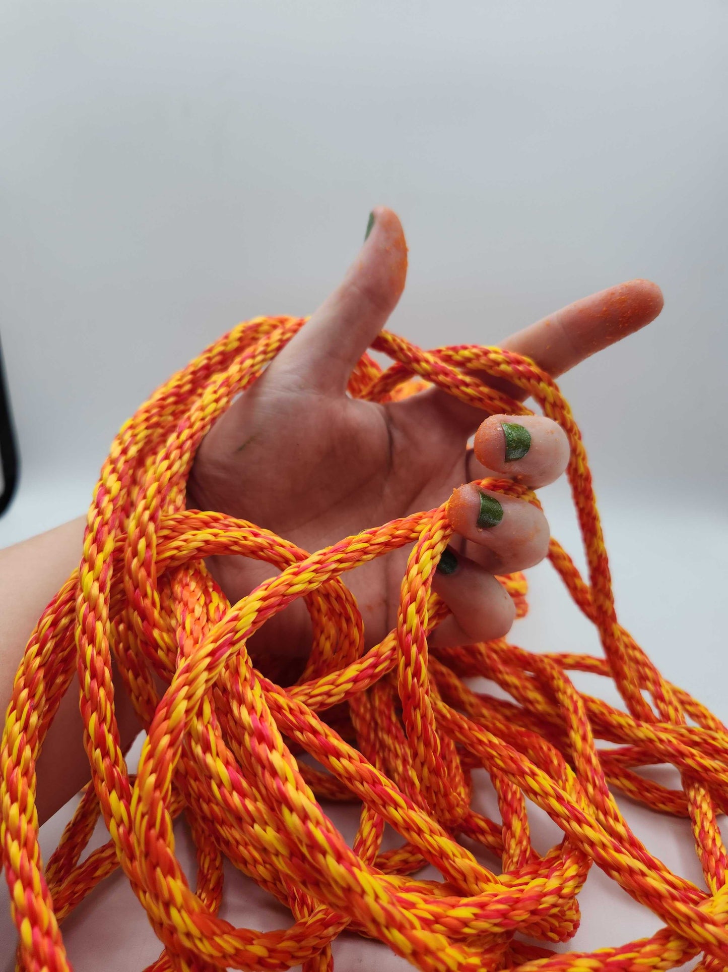Hochwertiges Bondage-/Suspensionsseil aus 100 % MFP (Multifilament-Polypropylen). MFP ist ein wasserfestes Seil, das gegen die meisten Öle und Schmierstoffe beständig ist. Im Gegensatz zu gefärbten Seilen ist dieses Seil mit vorgefärbten Fasern geflochten, sodass die Farbe durchgehend leuchtend ist und nicht ausblutet oder verblasst. Das Seil ist maschinenwaschbar und pflegeleicht. Eine PDF-Datei mit den vollständigen Spezifikationen unseres MFP-Seils, einschließlich der Bruchlasten, finden Sie hier . Unser gesamtes MFP-Seil wird nach unseren Vorgaben in einer lokalen Seilerei geflochten. Es ist speziell für Bondage- und Kink-Anwendungen entwickelt, sodass es sich weich und glatt auf der Haut anfühlt und dennoch Knoten gut hält. Zuschnitt und Endbearbeitung erfolgen in unserer Werkstatt. Das Seil ist ca. 6 mm vom Ende entfernt heißversiegelt.