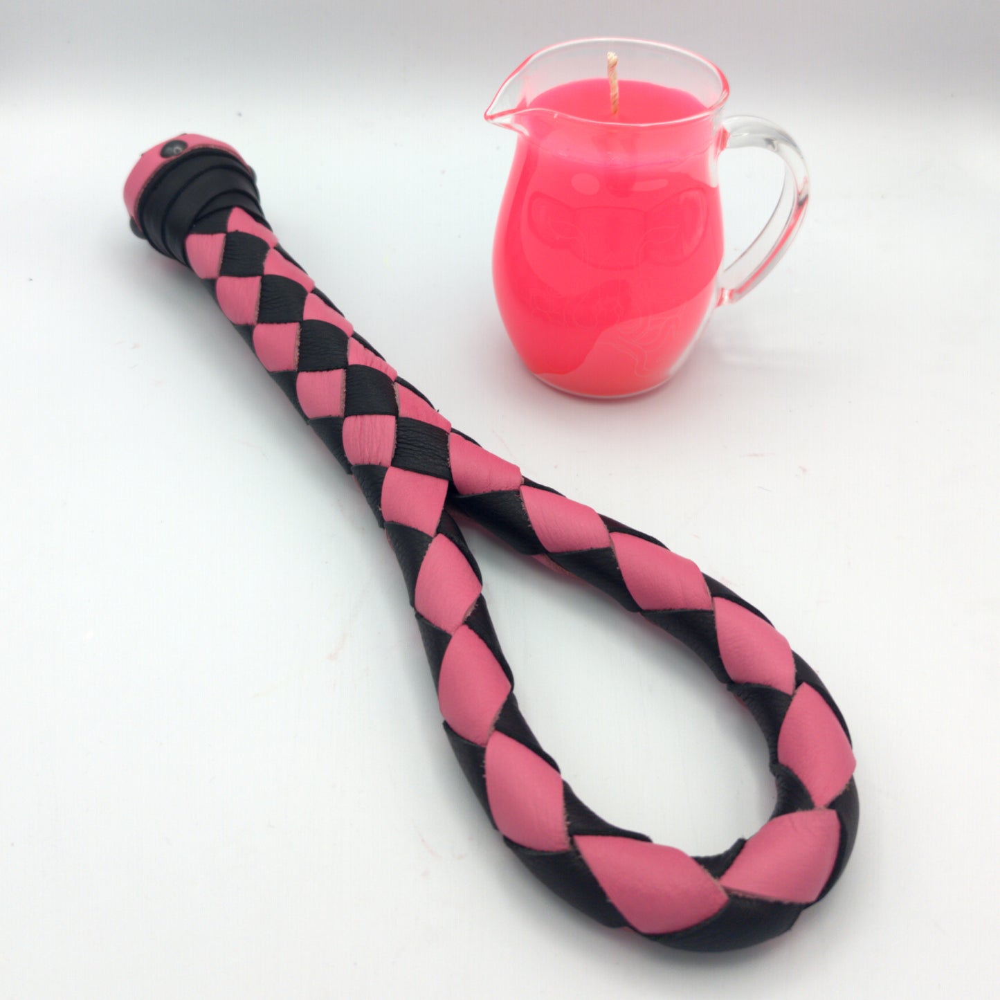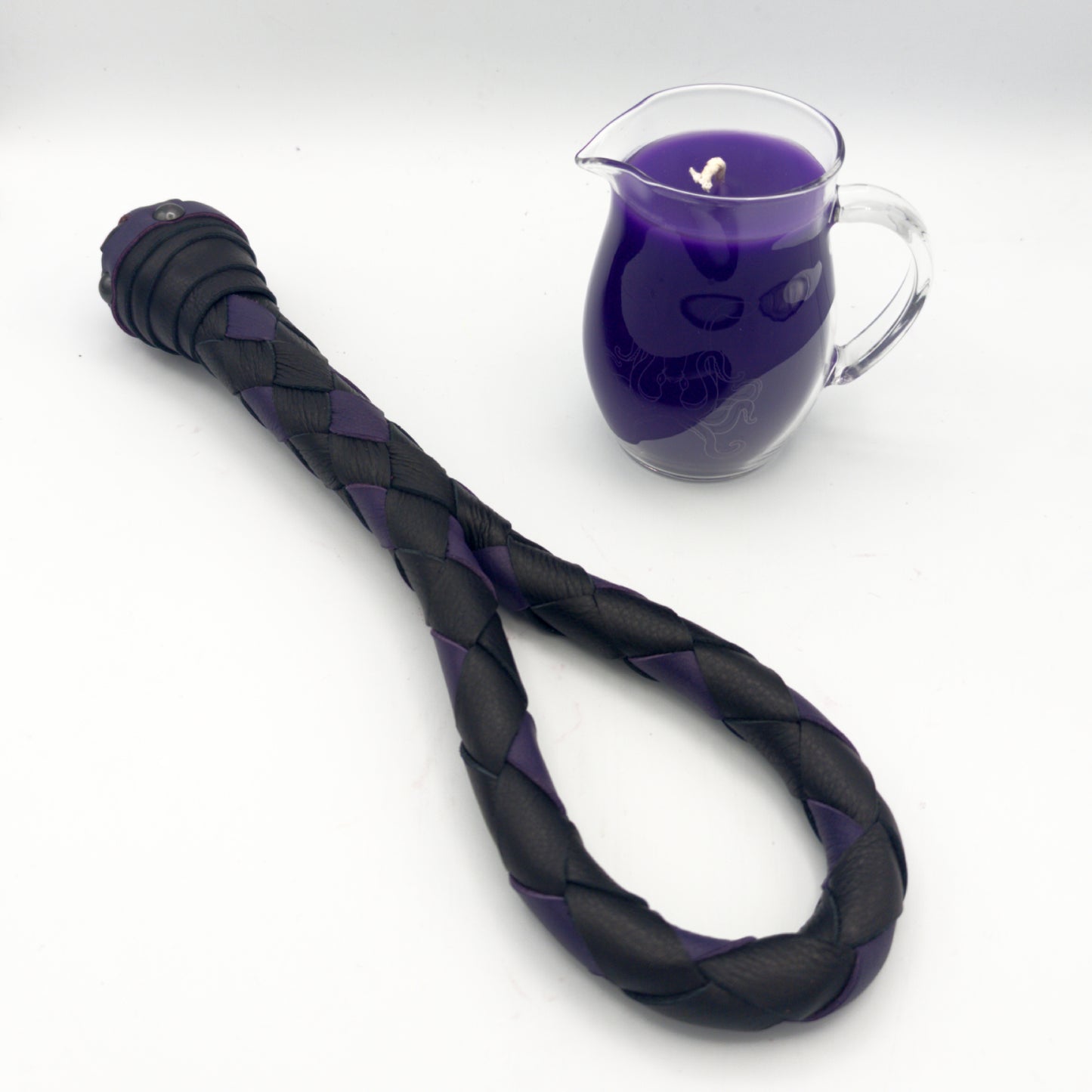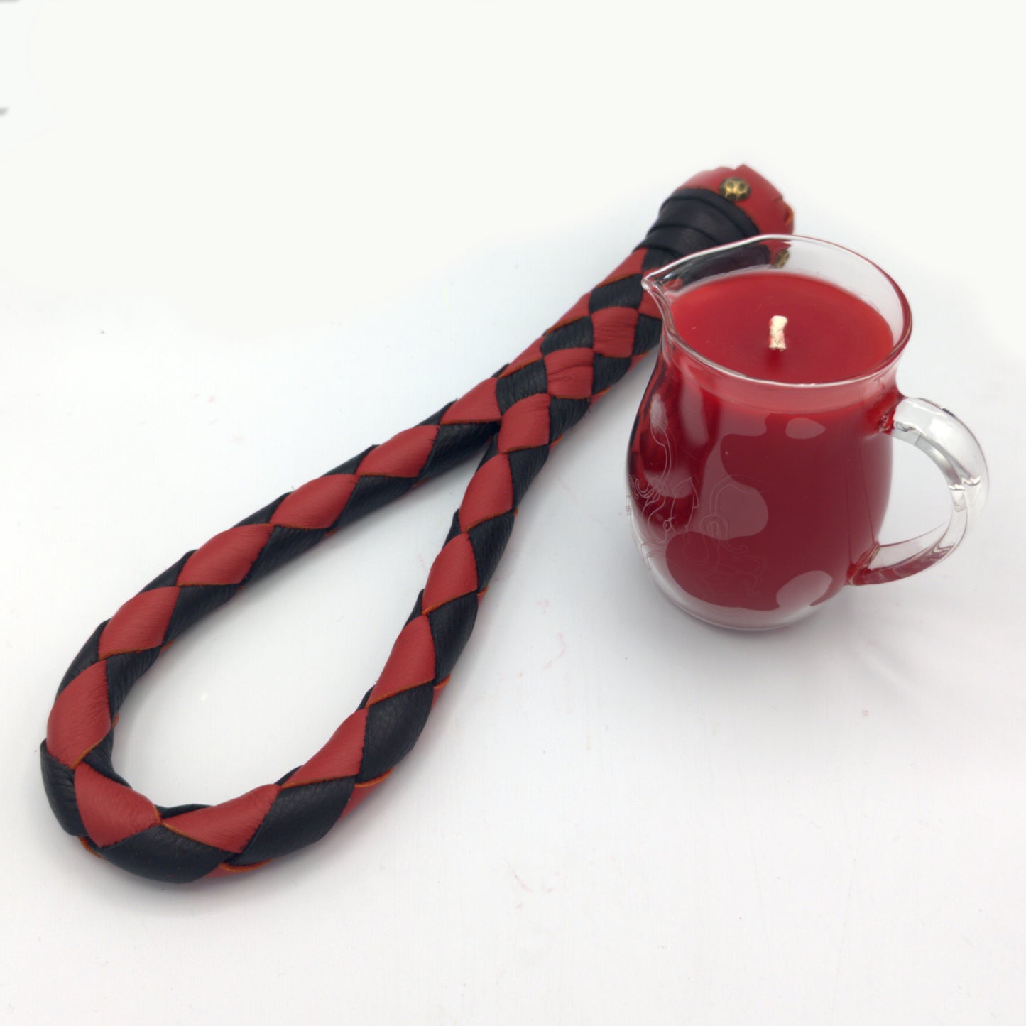 Next, one of our famous wax play pitcher candles for those who want to explore the lovely pleasures of hot wax play. We will match your candle color to your braided loop slapper.