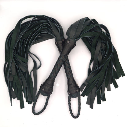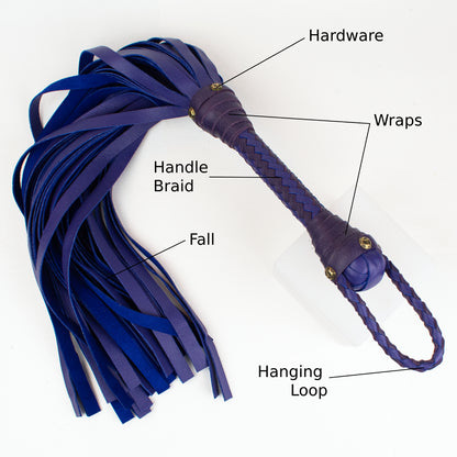 We make a variety of handcrafted leather floggers from all kinds of colors and types of leather. You can check out our selection of various hide materials that we work with on our Flogger Page.