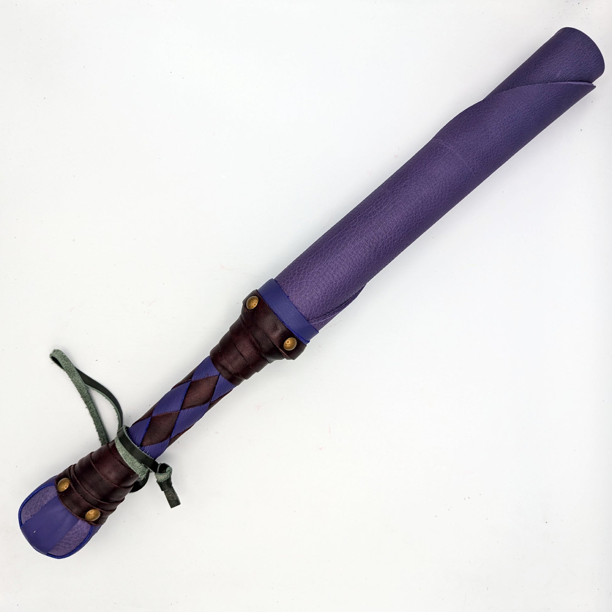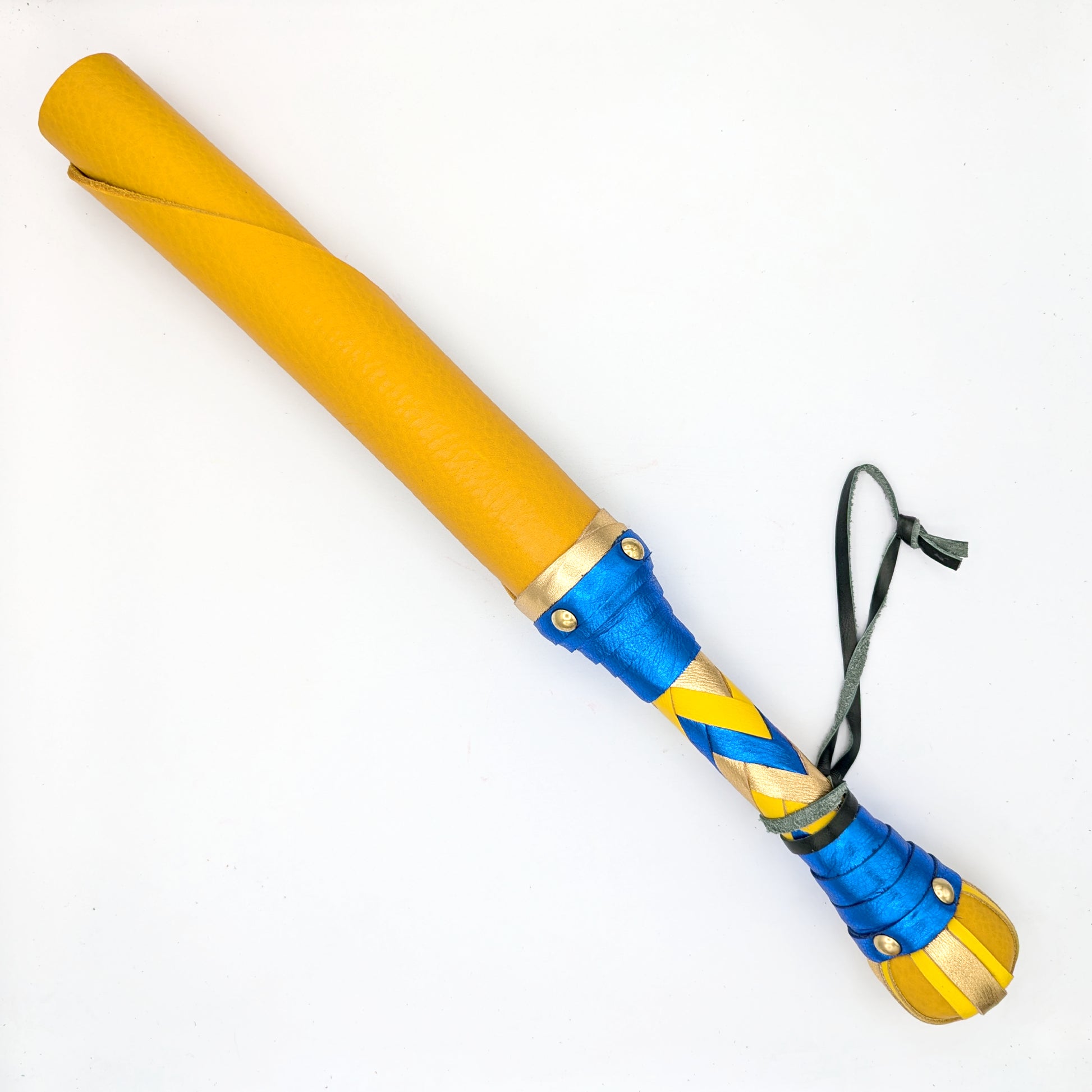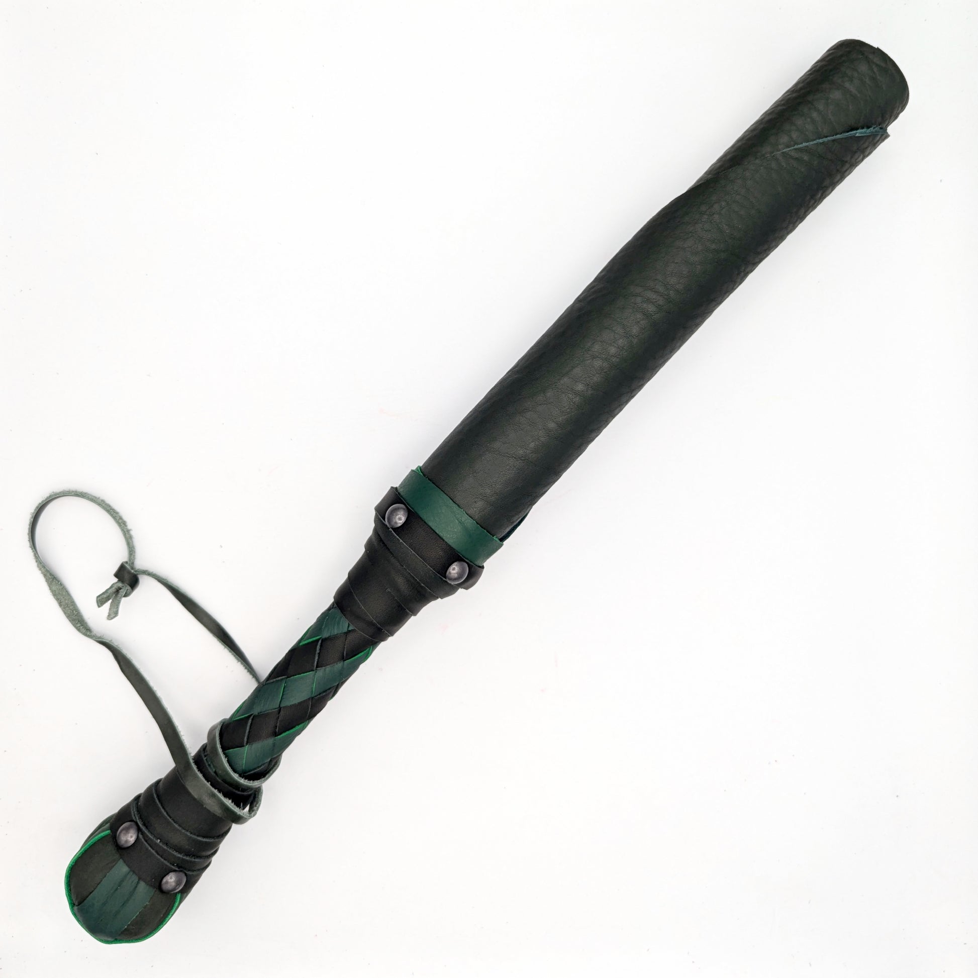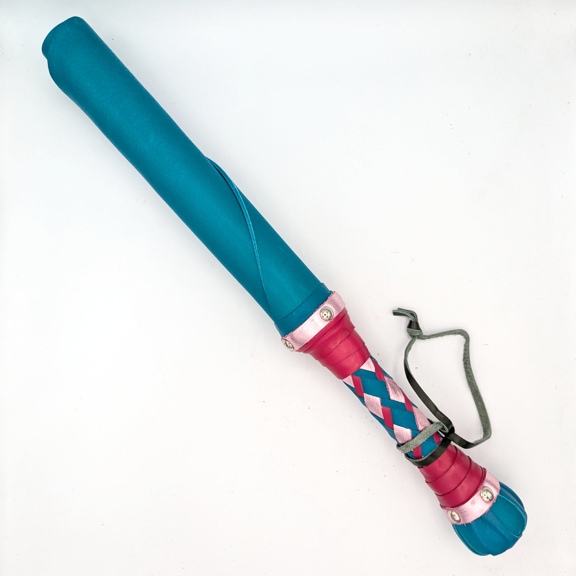 The Big Boi Beater is an oversized version of our original leather/color jack. It can be made with either thick/heavy bullhide (6-8oz leather) or with a solid rubber core surrounded with cowhide. The resulting toy is about 21" long in total with a pommel is designed to be used as an alternate striking element.