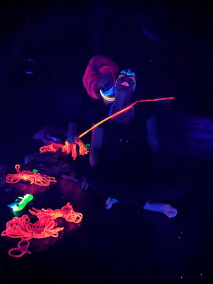 Note: this rope is not "glow-in-the-dark." It only glows under blacklight.