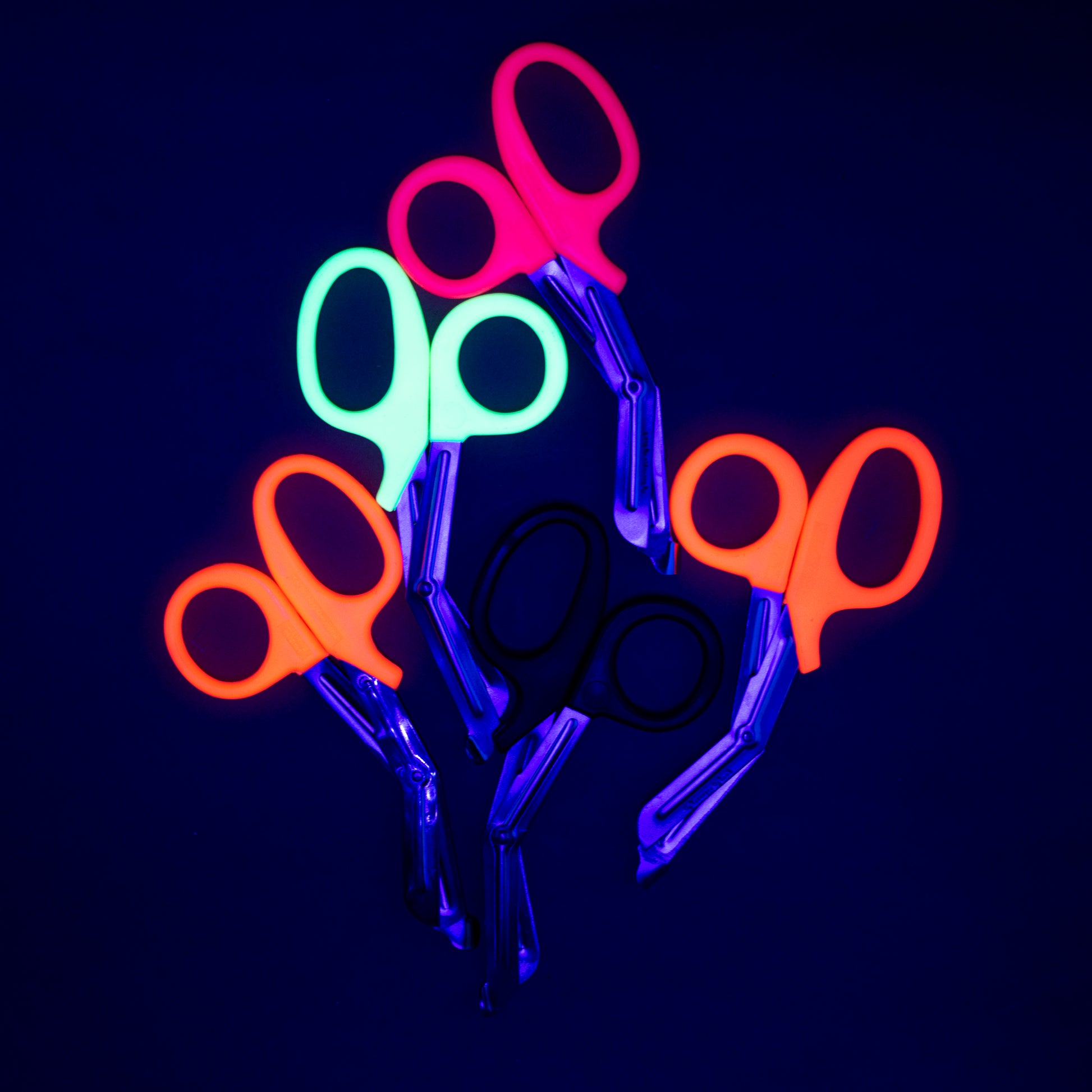 - Manche réactif aux UV/lumière noire : retrouvez vos ciseaux plus facilement dans un donjon éclairé à la lumière noire ! Couleurs : rose vif UV, orange UV, jaune UV ou vert fluo UV.
