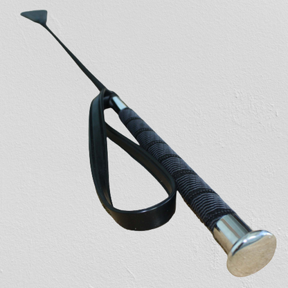 Notre cravache d'équitation mesure 57,15 cm (22,5 pouces) de long et possède une poignée confortable et bien lestée, un embout en cuir et une boucle à la base pour éviter de la perdre à cheval... euh... ;)