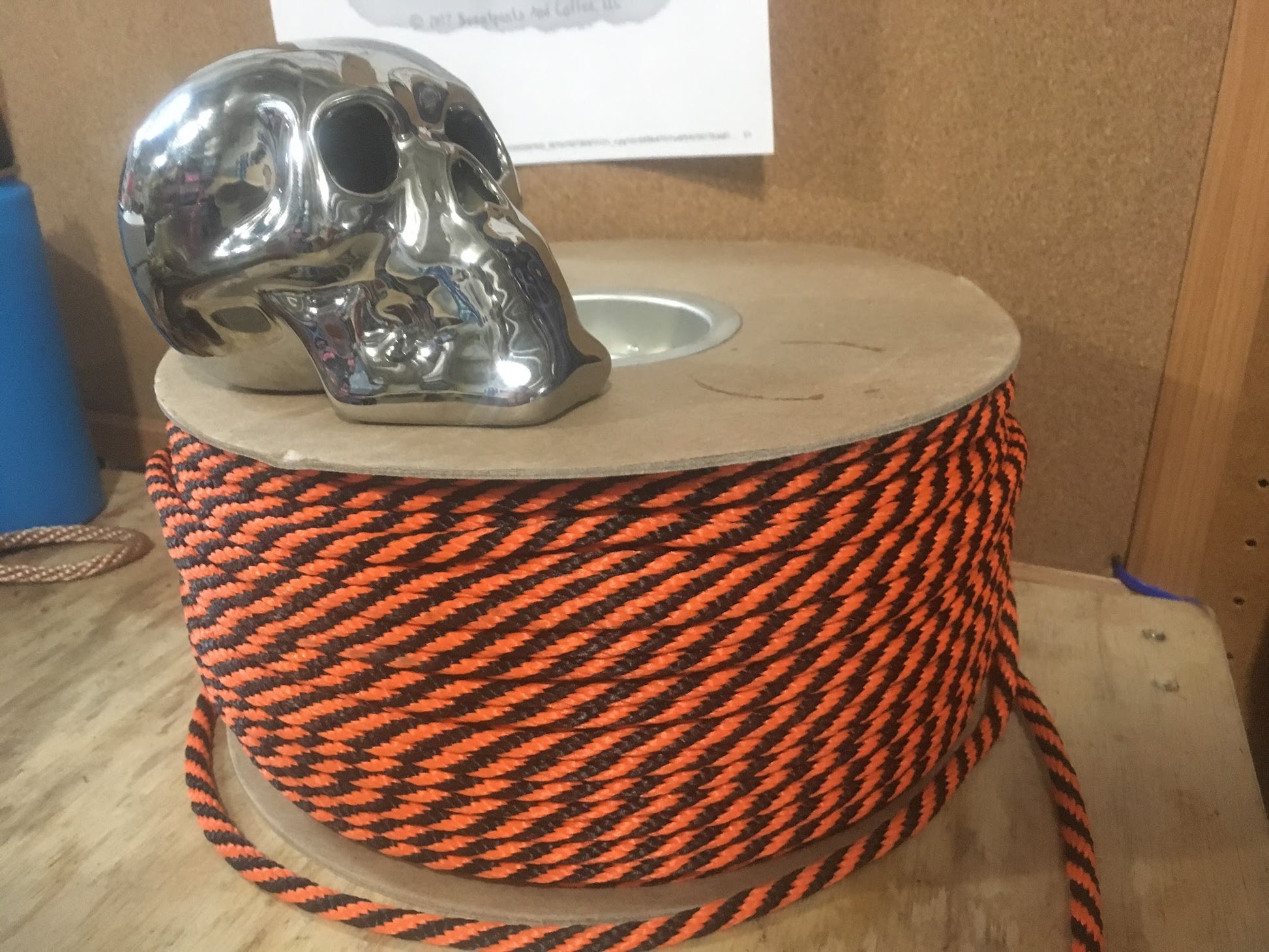 Our three halloween themed ropes are here to stay!  Black/Orange Twist or Candy Corn or Slime Grrl (Green/Black twist).  Perfect for pumpkin bondage, tying up scarecrows, and protection from zombies! 1/4" (6mm) rope in 30 foot lengths—if you need other lengths, get in touch.