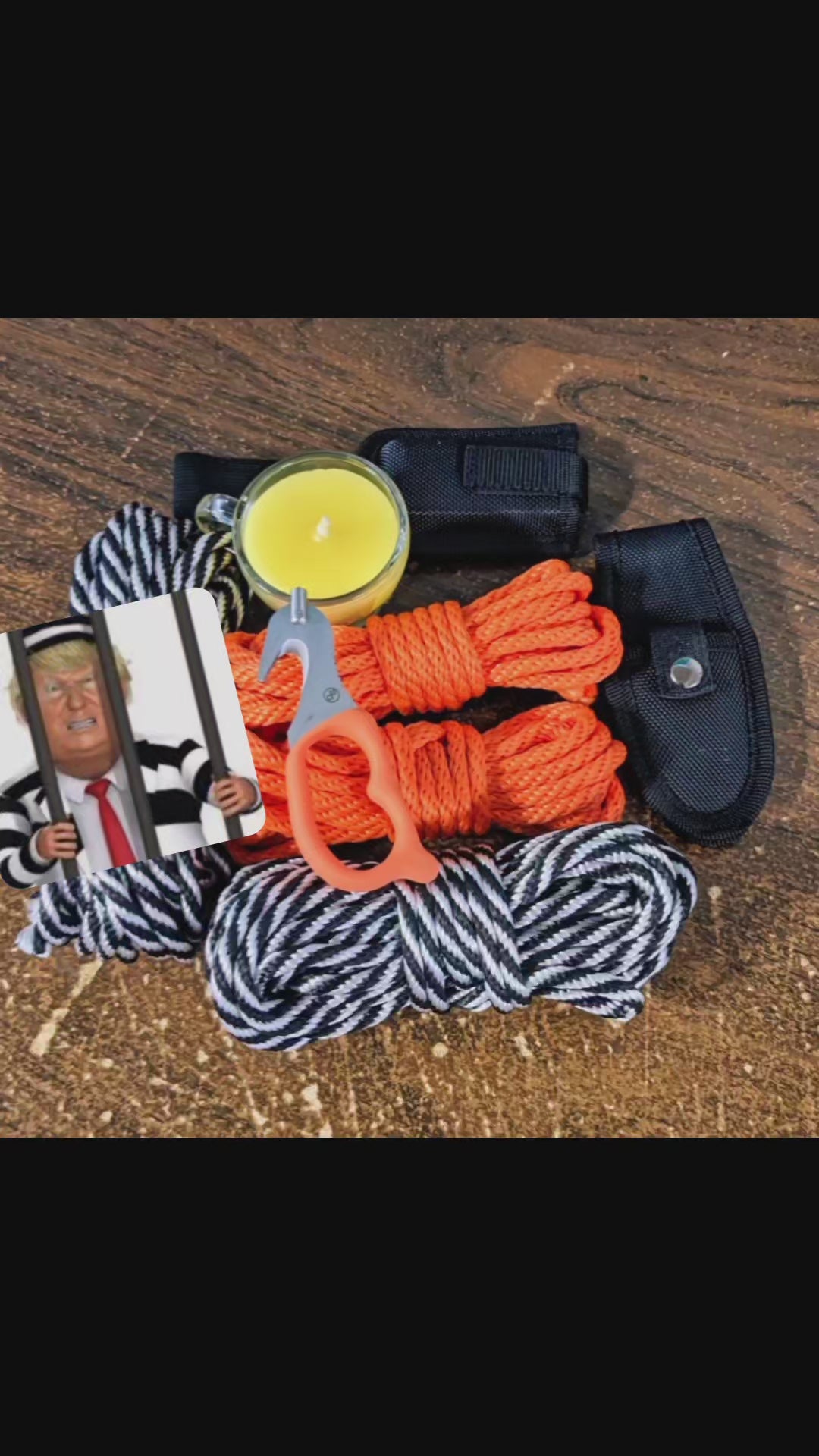 In honor of Trump's recent indictment we offer a celebratory bondage and wax kit.  As you watch Trump get thoroughly roped up by this, you can get roped up your self in a much more fun manner.