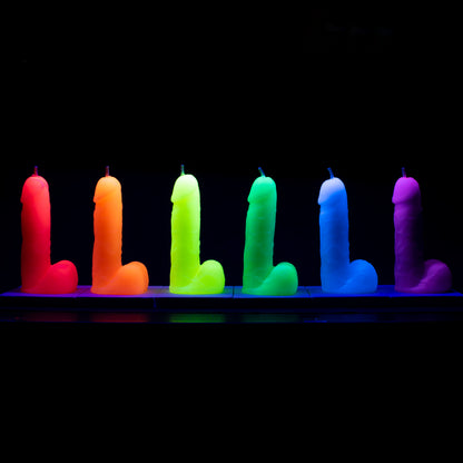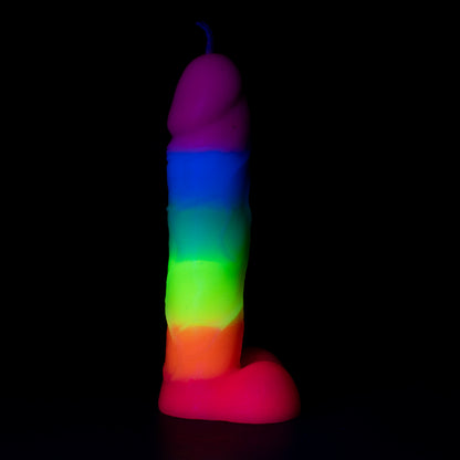 The Big Flamer, our large rainbow cock, contains more than twice as much wax as the other genitals, and in a full rainbow! It stands at a proud 6½ inches tall.