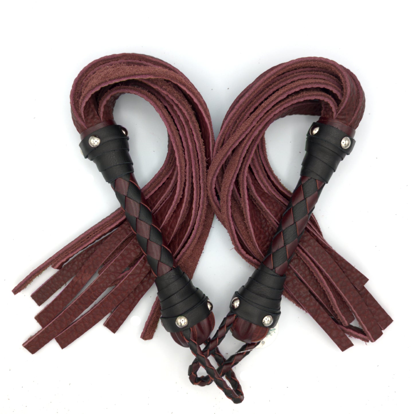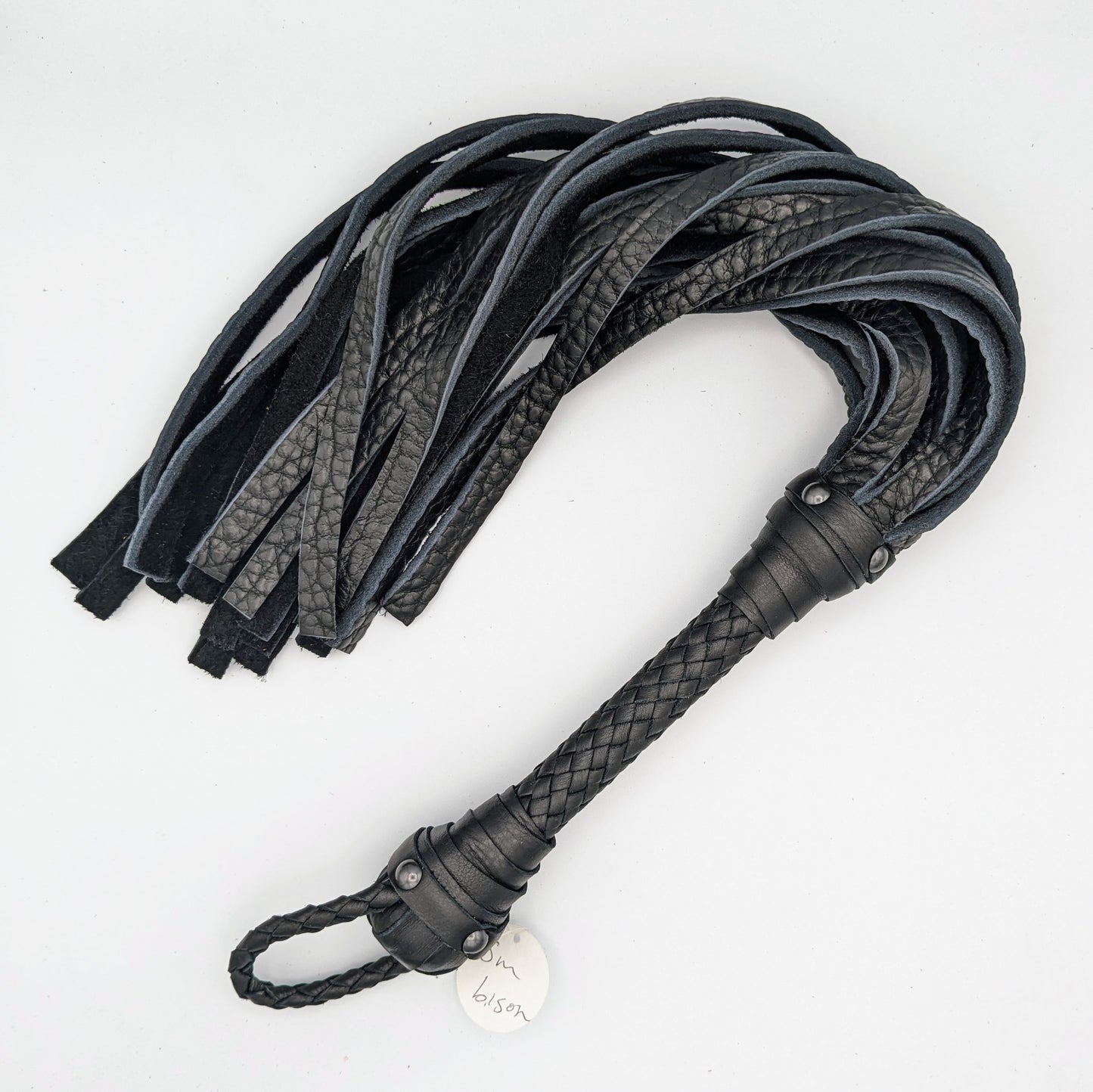 During the wait for our order I took it upon myself to make my own. I ordered a whole side of full grain bull leather for a tiny fraction of the cost. I cut forty four 1/2 inch falls 24" long, rolled it up with some leather cement, and added a handle. Mine is way heavier, strikes harder with less effort, and feels like a flogger not a janitor's mop.