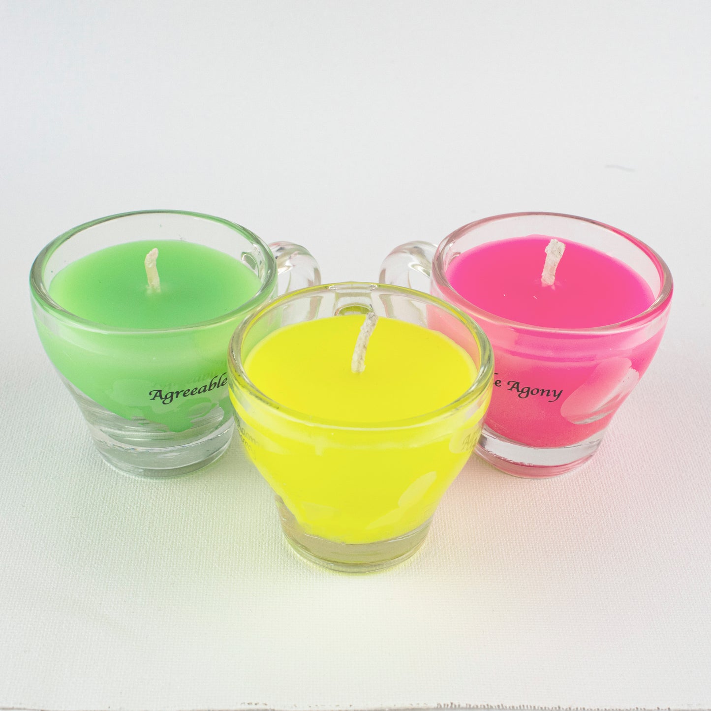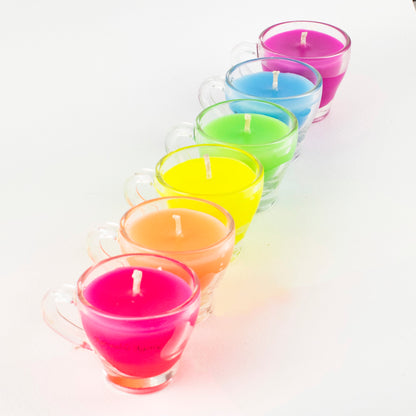 Wir bieten unsere Mini-UV-Teetassenkerzen einzeln (bitte geben Sie in den Anmerkungen eine Farbe an, wenn Sie möchten), in gemischten 3er-Sets oder als komplettes Set mit allen 6 UV-/Schwarzlicht-reaktiven Farben an.