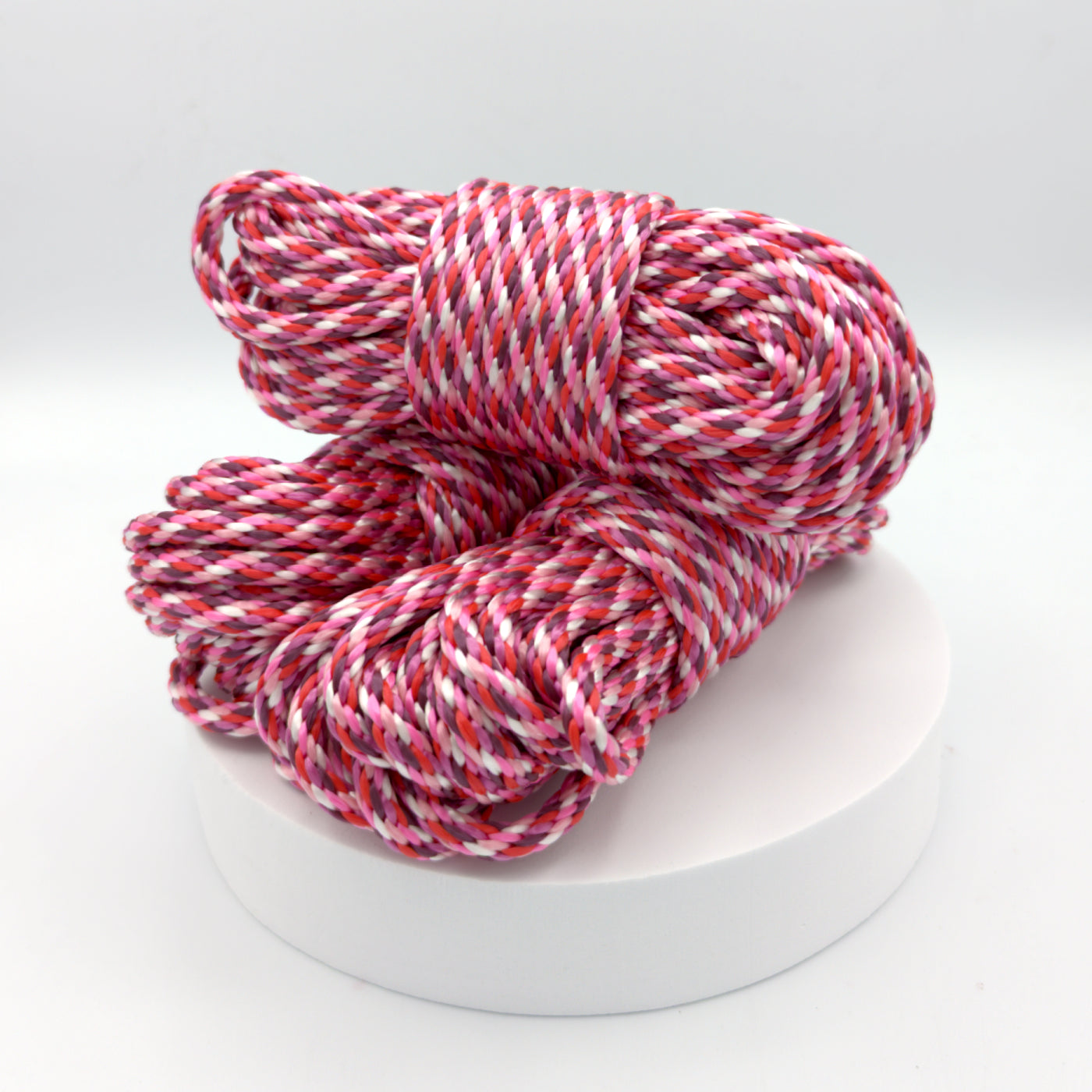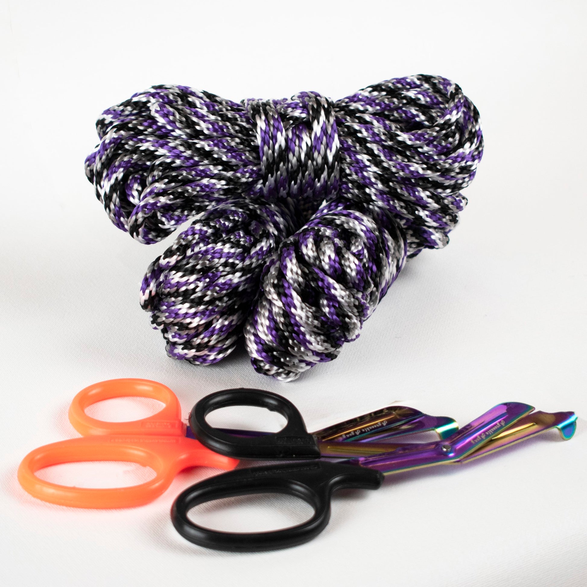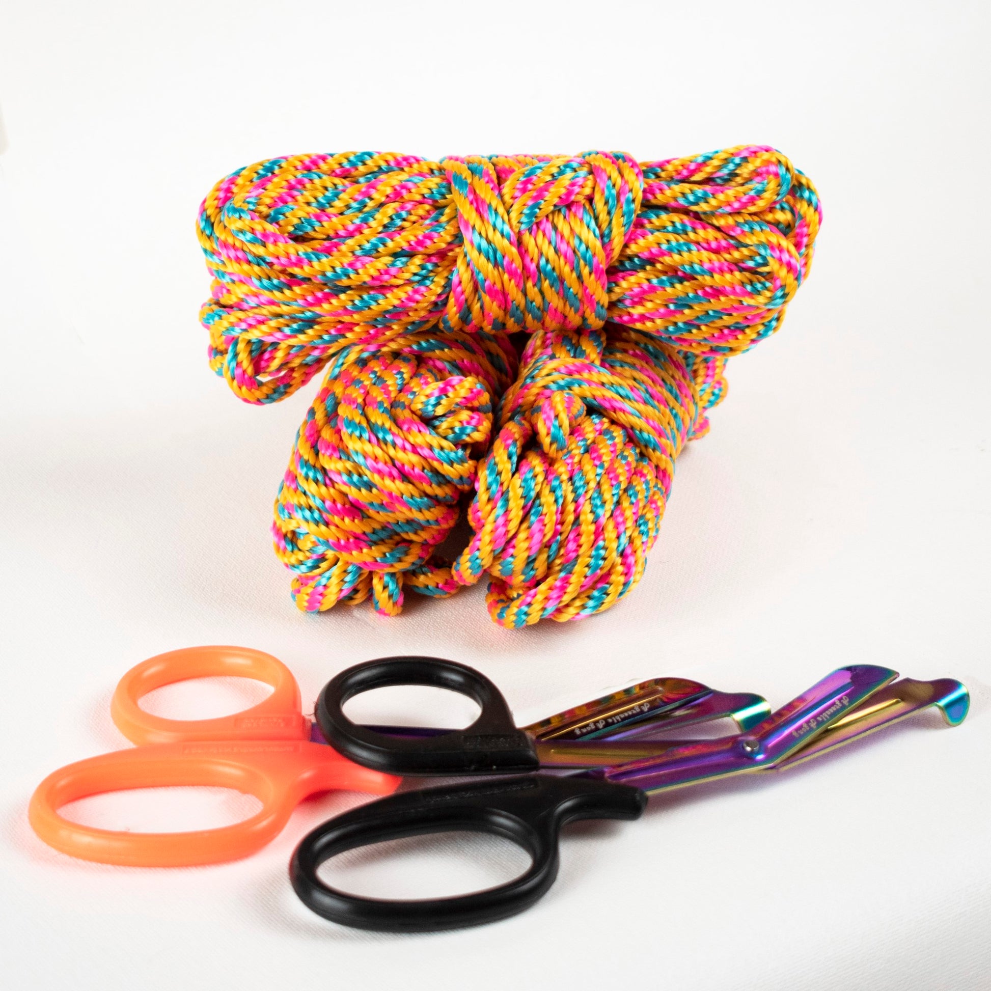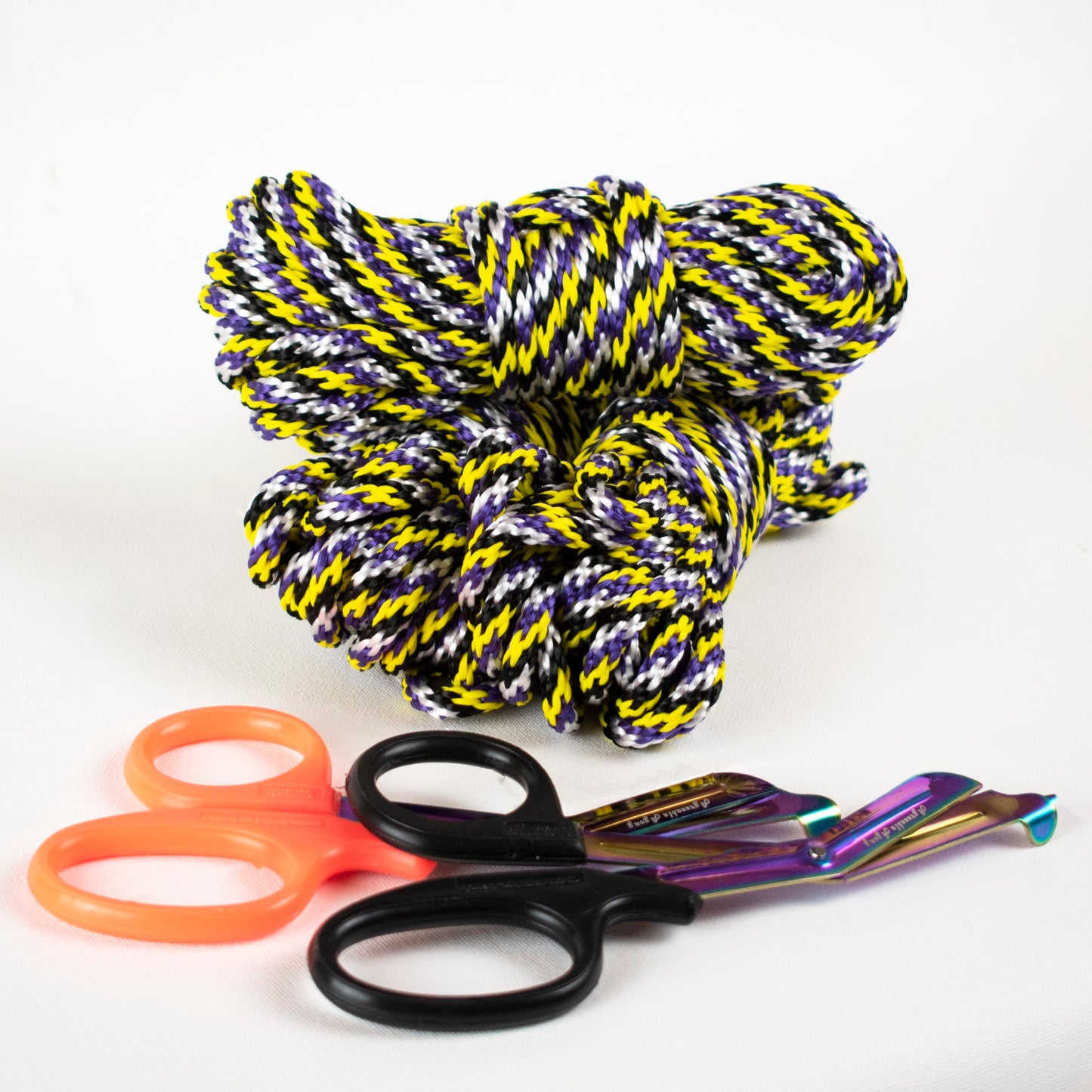 Pride-Seil wird in 9 Meter langen Bündeln geliefert. Wählen Sie die passende Größe – ein, drei oder sechs Bündel – und fügen Sie eine Sicherheitsschere hinzu, falls Sie noch keine haben!